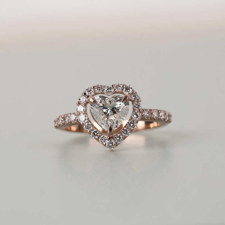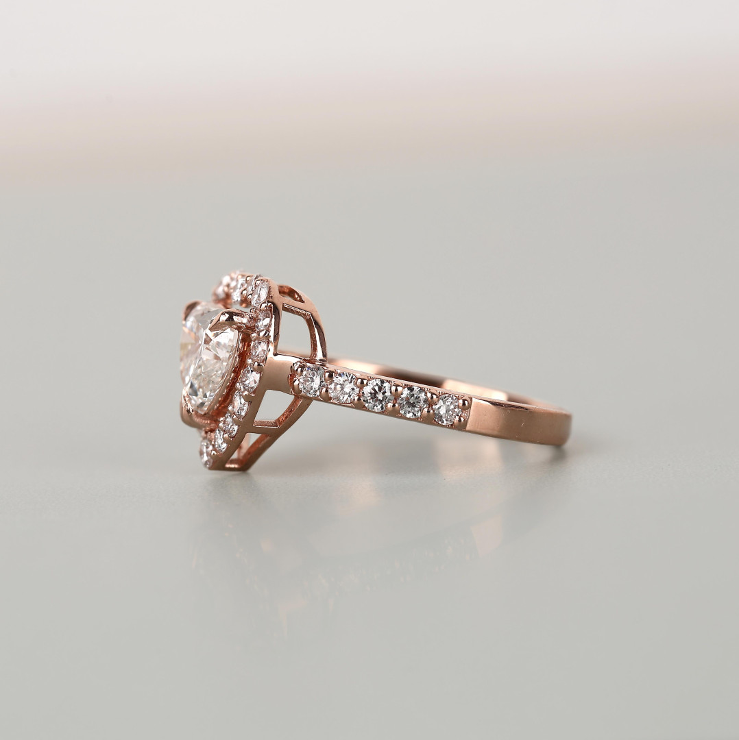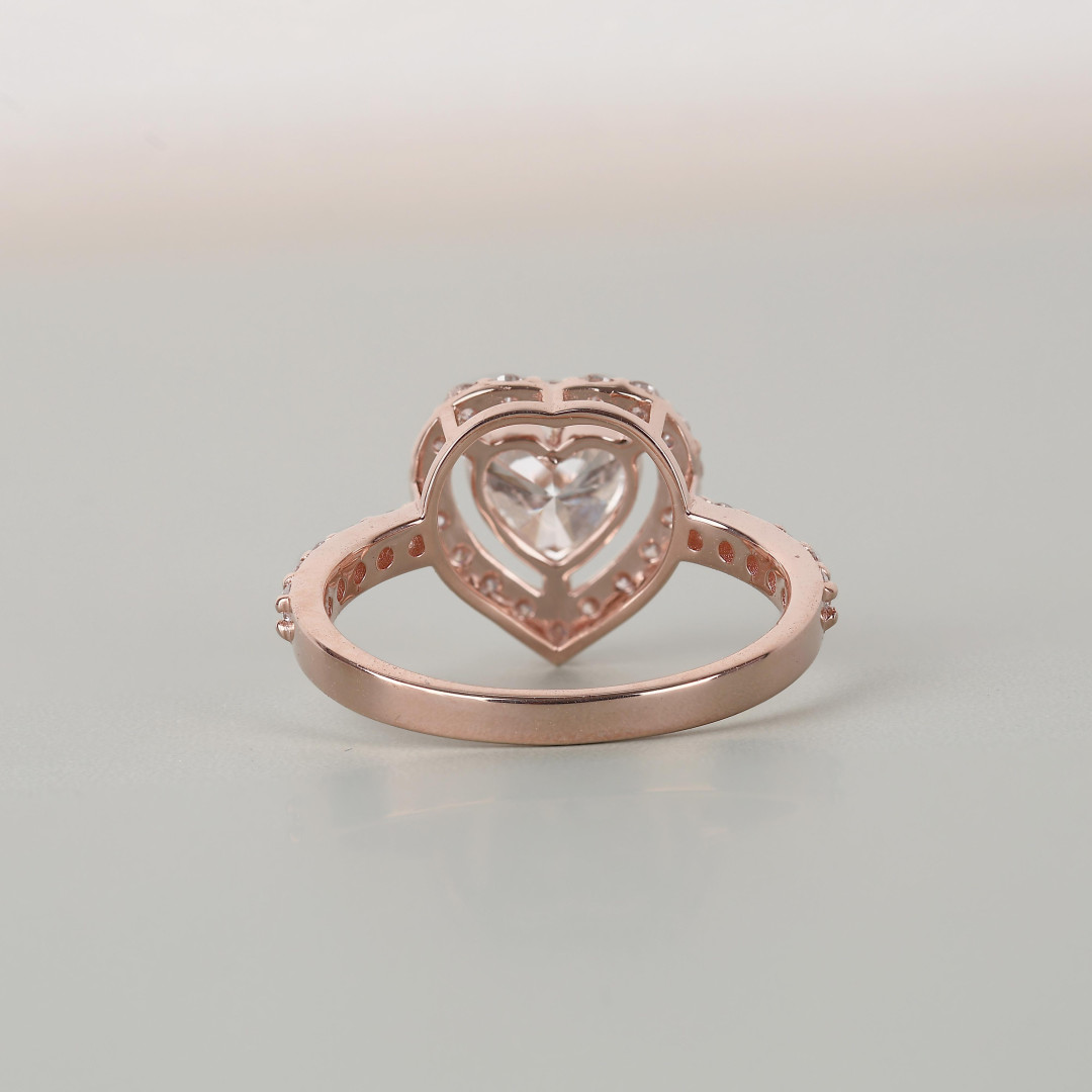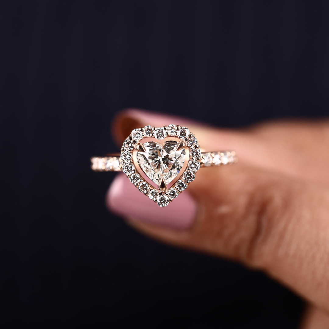 Heart Shape Lab Grown Diamond Halo Ring in Rose Gold | Round Cut Diamond Accents